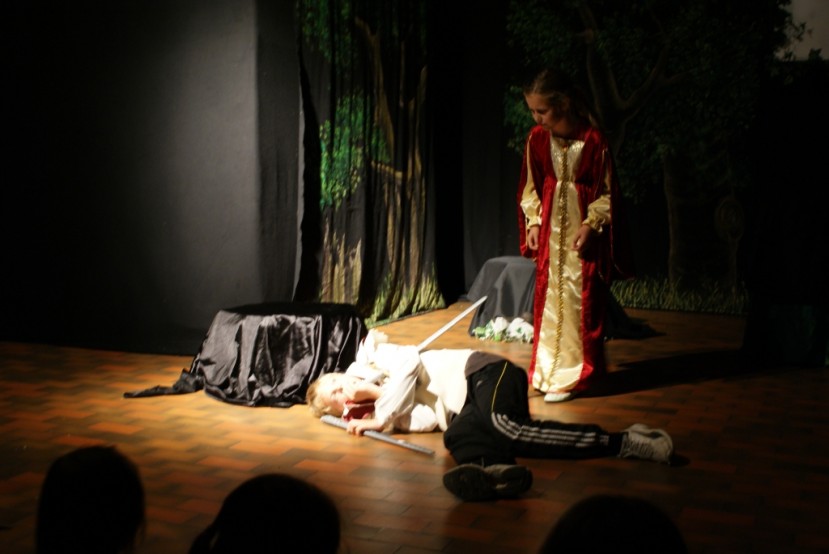В этом спектакле на сцене события происходят с персонажами в реальном мире людей, а события, происходящие в сказочном лесном мире эльфов, показываются в виде фильма на экране.