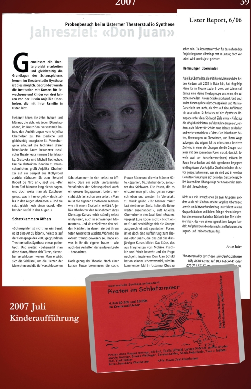 О спектакле «ДОН ЖУАН». Посещение репетиции спектакля. Газета «Uster Report» №6. 12.12.2006г. Автор: Анне Сютер.